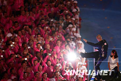 煙花再次璀璨,歌聲匯成海洋。北京奧運(yùn)會(huì)圣火緩緩熄滅,五環(huán)旗交與英倫。十六天,健兒們馳騁賽場(chǎng)屢創(chuàng)佳績(jī);十六天,東道主盡心盡力無(wú)微不至;十六天,朋友們相聚言歡增進(jìn)情誼;今宵,中國(guó)贏得贊譽(yù)——“無(wú)與倫比”。