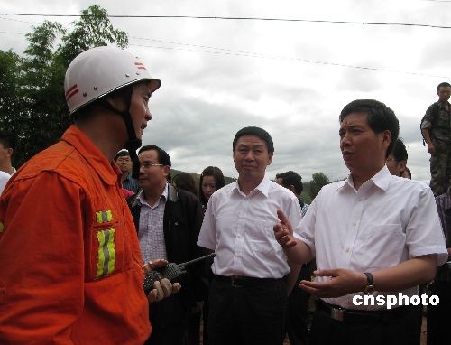圖:云南省長(zhǎng)秦光榮地震災(zāi)區(qū)查看災(zāi)情