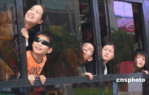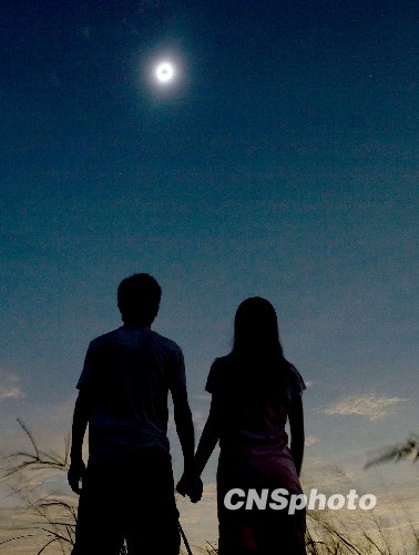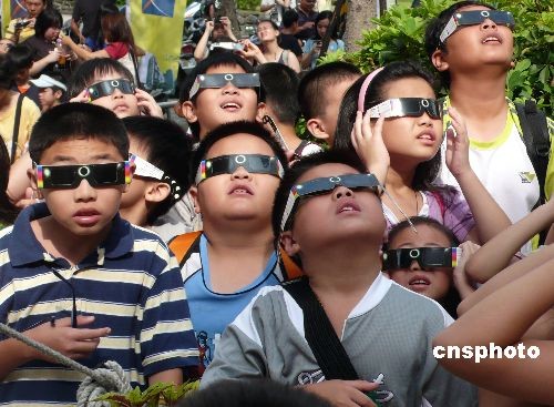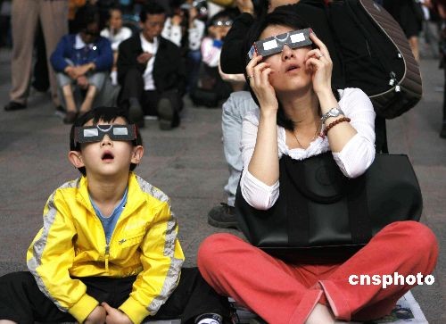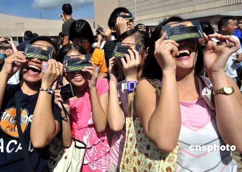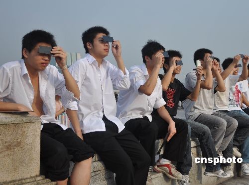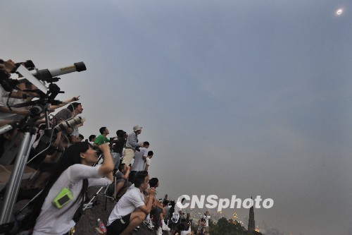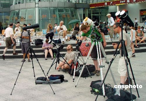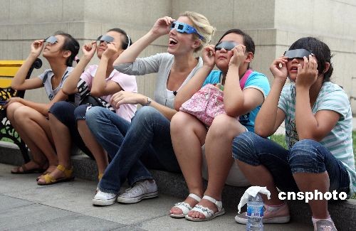 中國各地群眾觀看日食奇觀:外國媒體關(guān)注中國民眾觀測日全食
