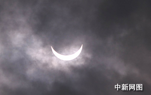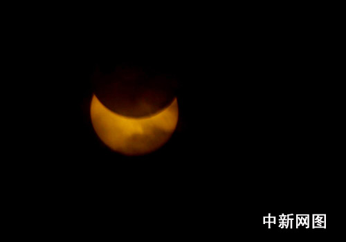 中國各地觀測日食奇觀:連云港上空出現(xiàn)日偏食景觀