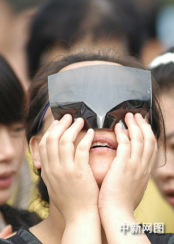 圖:蘭州市民千姿百態(tài)觀日食(3)