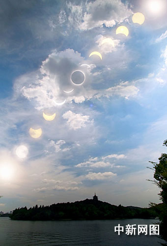 杭州西湖上日全食全程效果圖 如夢如幻
