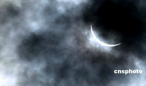 圖:日全食“食既” 重慶白晝?nèi)缫?/a>