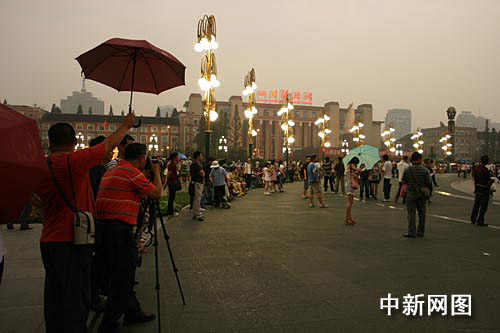 圖:日全食發(fā)生時(shí)安徽合肥街頭情景