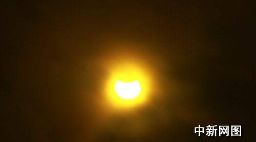 圖:“大日食”如約光臨重慶 當(dāng)?shù)厥忻衤N首觀看