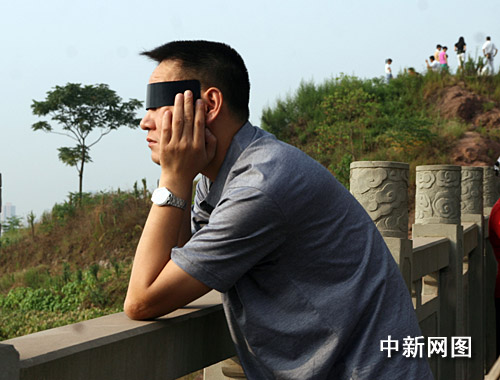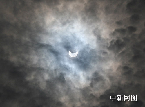 圖:“大日食”如約光臨重慶 當(dāng)?shù)厥忻衤N首觀看(2)