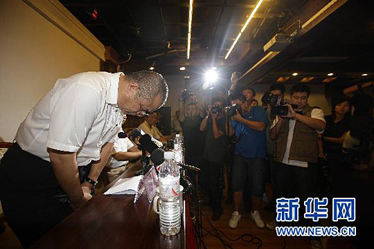 圖:河南航空公司監(jiān)事會(huì)主席鞠躬致歉