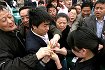 目擊"紅衫軍"沖東亞峰會會場:沒沖突 展示戰(zhàn)利品