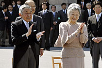圖:日本明仁天皇夫婦在東京慶祝金婚