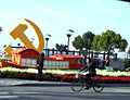 組圖:天安門廣場(chǎng)吊裝巨型標(biāo)語牌的新景觀