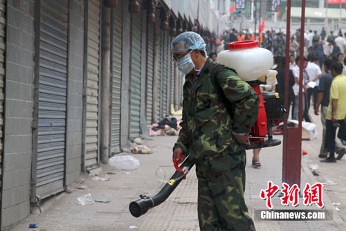 8月9日,甘肅舟曲縣城里在進(jìn)行消毒工作,目前,空氣中沒有明顯異味。9日晚,甘肅省舉行新聞發(fā)布會通報舟曲縣特大山洪泥石流災(zāi)害災(zāi)情及搶險救災(zāi)情況。中共甘南藏族自治州委書記陳建華介紹,截至8月9日下午2時,已成功解救受災(zāi)群眾1242人,失蹤1148人,死亡337人,受傷住院41人。他表示,雖然舟曲的醫(yī)院設(shè)施受到損壞,但他們非常重視災(zāi)區(qū)的衛(wèi)生防疫工作,目前,醫(yī)療器械、藥物的運(yùn)送工作已全面展開。中新網(wǎng)記者 殷春永 攝