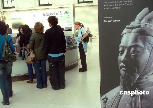 從即日起至2008年4月6日止,倫敦大英帝國博物館內(nèi)展出從西安新出土的兵馬俑歌妓、紅馬等上百件文物。英國華人廚師還在展館現(xiàn)場示范中國點(diǎn)心蒸肉包子,倫敦刮起“中國熱”。中新社發(fā) 盧威 攝