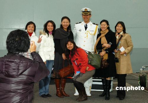 11月28日下午,抵達(dá)日本進(jìn)行正式友好訪問的中國海軍導(dǎo)彈驅(qū)逐艦“深圳號(hào)”,邀請(qǐng)旅日華僑華人留學(xué)生代表與日本民眾上艦參觀,年輕女性參觀者紛紛與英俊帥氣的中國海軍兵哥合影。中新社發(fā) 滕劍峰 攝