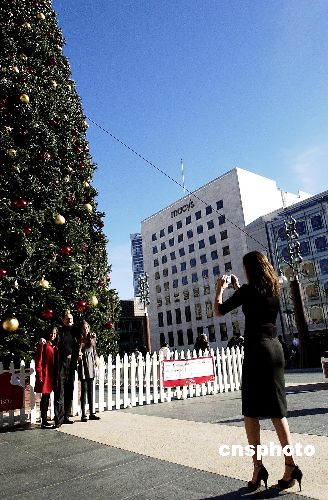 當(dāng)?shù)貢r間十二月二十五日,圣誕節(jié)的舊金山天氣晴朗。圖為一家美國人和樹立在舊金山聯(lián)合廣場上的巨大圣誕樹合影。中新社發(fā) 陳鋼 攝