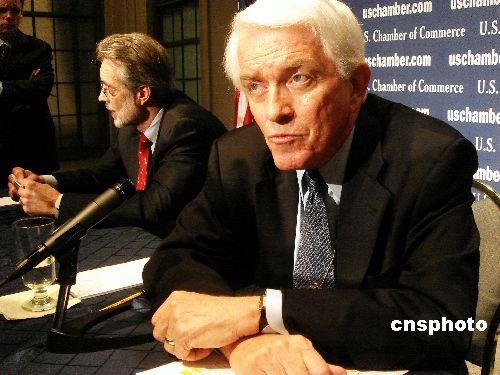 盡管次貸風暴和油價上漲對美國經(jīng)濟形成傷害,但美國商會會長兼首席執(zhí)行官托馬斯·多諾霍八日上午在華盛頓舉行的美國商會年度記者會上預(yù)言,今年美國經(jīng)濟將緩慢增長。他認為,美國經(jīng)濟“也許在今年下半年會恢復(fù)以往的增長勢頭”。圖為托馬斯·多諾霍在接受記者提問。中新社發(fā) 邱江波 攝