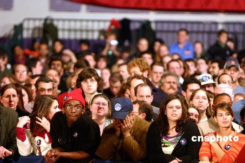 當(dāng)?shù)貢r(shí)間一月八日,美國(guó)民主黨總統(tǒng)競(jìng)選人奧巴馬在新罕布什爾州民主黨初選敗給希拉里。中新社發(fā) 李靜 攝