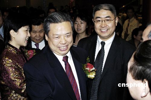 當(dāng)?shù)貢r(shí)間一月十日晚,美國(guó)紐約華人社團(tuán)聯(lián)席會(huì)屬下二十七個(gè)僑團(tuán)的五百多名僑界代表在紐約第二大中國(guó)城皇后區(qū)法拉盛舉辦隆重晚宴,歡迎中國(guó)駐紐約總領(lǐng)事館總領(lǐng)事彭克玉履新。圖為晚宴上彭克玉(中)與夫人楊京梅(左)在紐約華人社團(tuán)聯(lián)席會(huì)主席謝剛(右)的陪同下與熱情的華僑代表會(huì)面。中新社發(fā) 鄧悅 攝