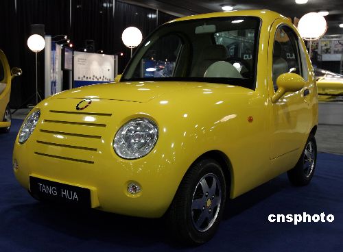 當(dāng)?shù)貢r(shí)間1月14日,一款名為“詩經(jīng)”的迷你電池車在2008北美車展上與國(guó)際名車同臺(tái)展示。這款由中國(guó)民營(yíng)企業(yè)推出的迷你電池車,以中國(guó)文化和環(huán)保為理念,首次赴北美參展,由此希望進(jìn)軍北美和歐洲市場(chǎng)。中新社發(fā) 潘索菲 攝