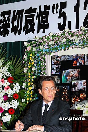 薩科奇在中國駐法大使館悼念地震遇難者