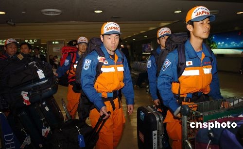 5月21日上午,前往四川地震災區(qū)支援中國抗震救災的日本國際緊急救援隊一行乘機回到東京,受到日本政府和在日華人華僑的歡迎。圖為抵達成田機場的日本救援隊隊員。