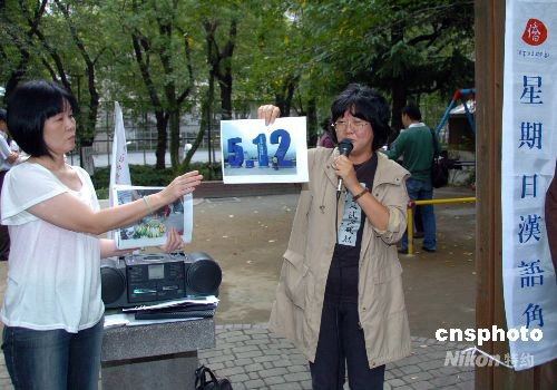 10月5日,日本自由撰稿人蘆澤禮子女士在東京漢語角介紹她剛從中國四川震區(qū)采訪的所見所聞。蘆澤禮子介紹說,在四川震區(qū)活躍著大批中國和日本的志愿者。他們?yōu)闉?zāi)區(qū)人民盡快重建家園、恢復(fù)生產(chǎn)生活,做出了可歌可泣的貢獻(xiàn)。她說,通過這次大地震,志愿者精神在中國得到進(jìn)一步普及,這對于中國今后的發(fā)展有著十分重要的意義。中新社發(fā) 段躍中 攝