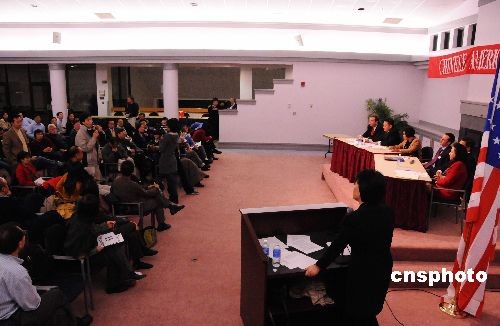 當(dāng)?shù)貢r間十月二十八日晚,兩黨競選陣營代表在此間和美籍華人社區(qū)領(lǐng)袖舉行特別會議,就兩黨的競選政策回答了華裔選民關(guān)注的問題。圖為民主共和兩黨競選陣營代表和華裔選民交流。中新社發(fā) 邱江波 攝
