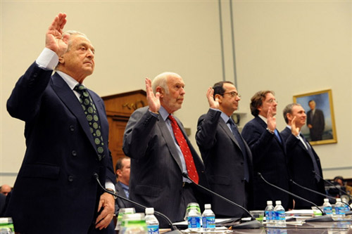 為弄清金融危機發(fā)生的原因,尋找“對癥下藥”的政策措施,美國國會在11月13日聆訊5名久負盛名的對沖基金經(jīng)理人,調(diào)查這5名經(jīng)理人在金融危機中所起的作用。按照國會的要求,這5名經(jīng)理人向美國會監(jiān)管和政府改革委員會作證。這5名經(jīng)理人去年收入均超過了10億美元,其中包括赫赫有名的喬治·索羅斯。