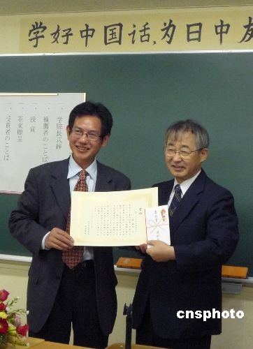 圖:日中學(xué)院首次為旅日華人頒發(fā)倉石獎(jiǎng)