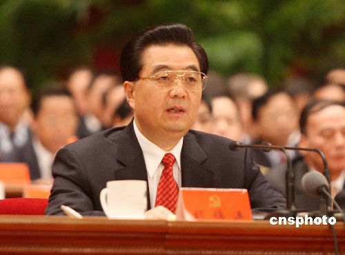 十月二十一日,中國共產(chǎn)黨第十七次全國代表大會在北京人民大會堂閉幕,中共中央總書記胡錦濤發(fā)表講話。中新社發(fā) 毛建軍 攝