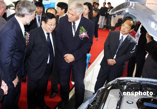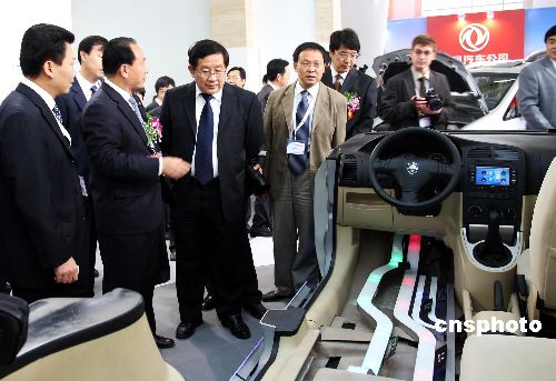 10月25日,第五屆北京國際節(jié)能環(huán)保汽車展覽會在北京開幕,中國科技部部長萬鋼參觀展會上的展車。中新社發(fā) 鄭雄增 攝