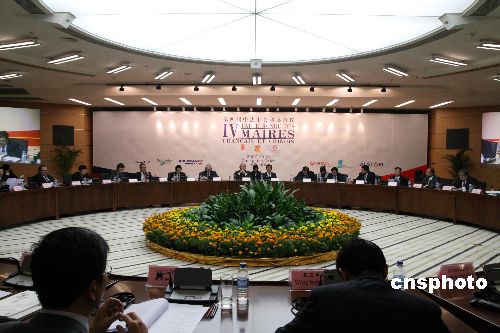 10月26日,第四屆“中法市長圓桌會議”在山城重慶拉開帷幕!爸蟹ㄊ虚L圓桌會”由中法兩國元首倡議于2004年創(chuàng)設,由中國人民外交學會和法國法中委員會共同組織,每年輪流在兩國舉辦。會議主要圍繞城市規(guī)劃和建設、可持續(xù)發(fā)展等主題進行研討,并就中法城市間的交流、合作、建設進行商洽。中新社發(fā) 郭晉嘉 攝
