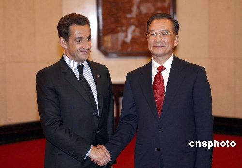 十一月二十六日,中國國務(wù)院總理溫家寶在北京釣魚臺(tái)國賓館會(huì)見來訪的法國總統(tǒng)薩科奇。中新社發(fā) 盛佳鵬 攝