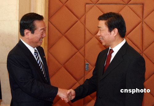 十二月七日,中共中央政治局委員、中央書記處書記、中央組織部部長(zhǎng)李源潮在北京會(huì)見以黨首小澤一郎為團(tuán)長(zhǎng)的日本民主黨大型代表團(tuán)。中新社發(fā) 廖文靜 攝