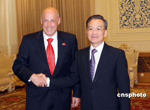 十二月十三日,北京人民大會堂,中國國務院總理溫家寶會見美國財政部長保爾森等出席第三次中美戰(zhàn)略經(jīng)濟對話的代表。中新社發(fā) 毛建軍 攝