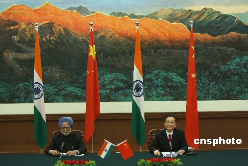 1月14日,中國國務院總理溫家寶與印度總理辛格在北京人民大會堂舉行會談,并共同會見記者。中新社發(fā) 盛佳鵬 攝