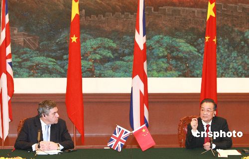 圖:溫家寶與英國首相布朗共同會見記者