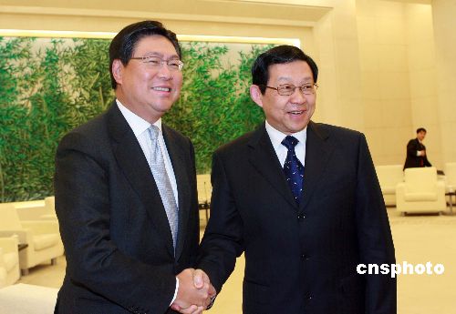 一月二十五日,中國(guó)商務(wù)部部長(zhǎng)陳德銘在北京會(huì)見(jiàn)香港商務(wù)及經(jīng)濟(jì)發(fā)展局長(zhǎng)馬時(shí)亨一行。中新社發(fā) 廖文靜 攝