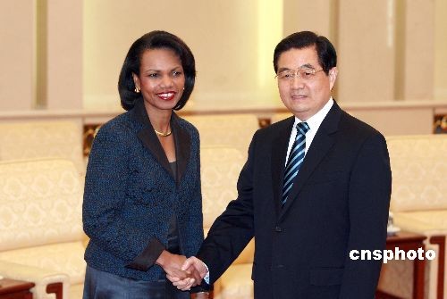 圖:胡錦濤會見美國國務(wù)卿賴斯