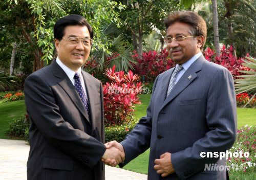 胡錦濤在三亞歡迎巴基斯坦總統(tǒng)穆沙拉夫