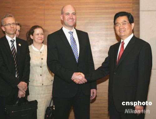 圖:胡錦濤在博鰲會(huì)見(jiàn)瑞典首相