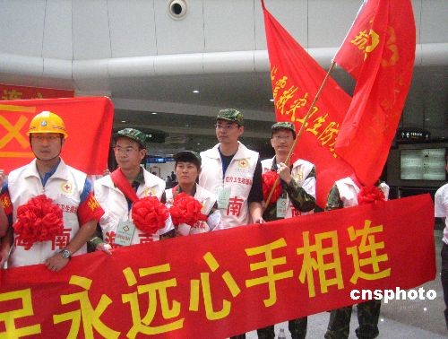 五月二十日,首批海南青年醫(yī)療衛(wèi)生抗震救災志愿者服務(wù)隊共二十五人,從?诿捞m機場出發(fā),前往四川綿陽平武縣抗震救災。該批具有專業(yè)醫(yī)療技能及抗震經(jīng)驗的志愿者,來自海南省人民醫(yī)院、海南省及各市縣疾控中心,由海南省衛(wèi)生廳及共青團海南省委共同招募。