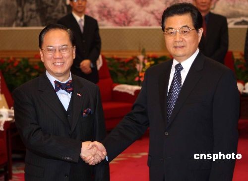 圖:胡錦濤會(huì)見香港特區(qū)行政長(zhǎng)官曾蔭權(quán)