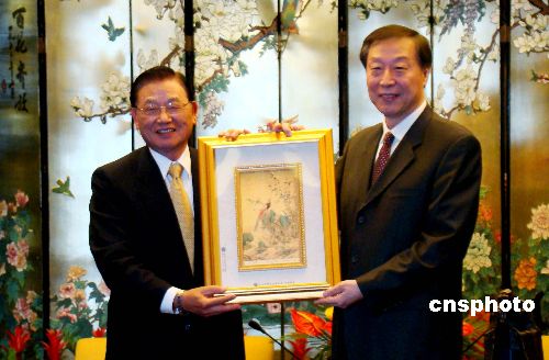 一月十日午間,江蘇省長(zhǎng)羅志軍在南京會(huì)見臺(tái)灣;鶗(huì)董事長(zhǎng)江丙坤,以及海協(xié)會(huì)與;鶗(huì)聯(lián)合參訪團(tuán)一行。會(huì)見中,羅志軍希望臺(tái)商堅(jiān)定在江蘇投資創(chuàng)業(yè)的信心。中新社發(fā) 丁梅 攝