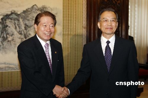 2月24日,中國國務院總理溫家寶在北京中南海紫光閣會見韓國外交通商部長官柳明桓。中新社發(fā) 盛佳鵬 攝