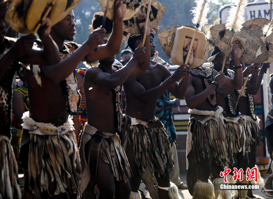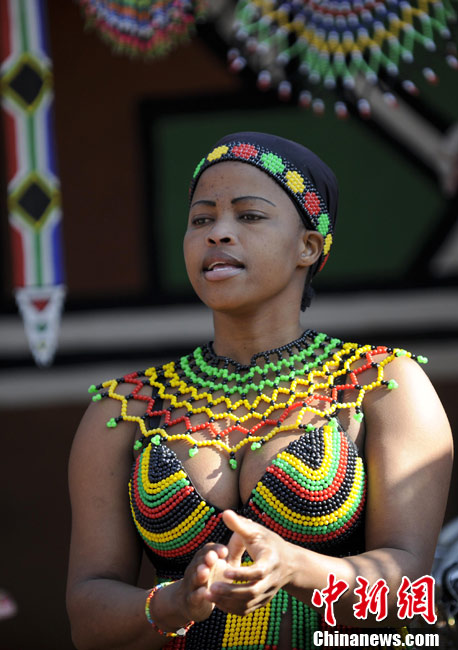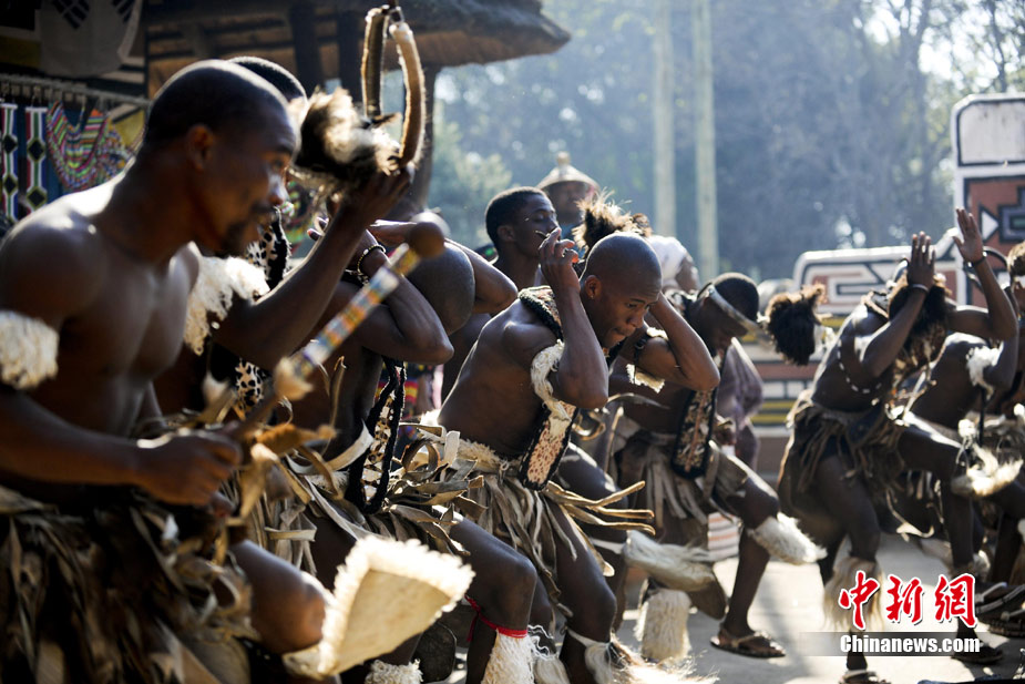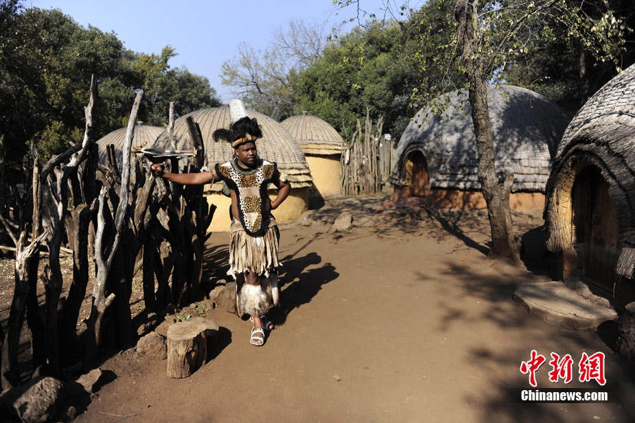 在南非約堡郊外,號稱“南非文化窗口”的萊賽迪(Lesedi)民俗村,聚居著南非最重要的四個部落。這里有著非洲土著餐飲,還有著原生態(tài)的舞蹈表演,當(dāng)客人來訪,村民就會盛裝在村口迎接。圖為萊賽迪民俗村。 中新社記者 廖攀攝
