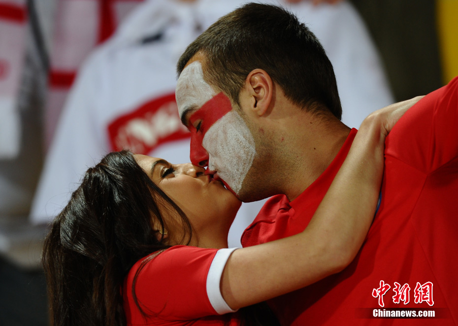 足球讓女人走開(kāi)不是真理,與愛(ài)人共同享受足球之魅才是幸福。看臺(tái)上愛(ài)侶的濃情蜜意著實(shí)讓人羨慕,情到深處的深深一吻,獻(xiàn)給愛(ài)人,也獻(xiàn)給令人癡迷的世界杯。中新社記者 廖攀 攝