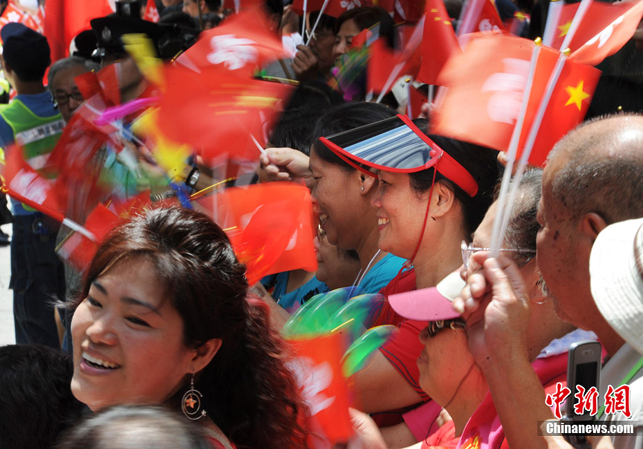 7月1日,香港特別行政區(qū)在金紫荊廣場(chǎng)隆重舉行升旗儀式﹐慶祝香港特別行政區(qū)成立十三周年。中新社發(fā) 鄭祚聲 攝
