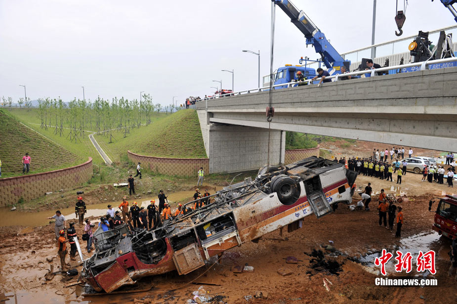 韓國發(fā)生載人公交車失控墜橋事故
