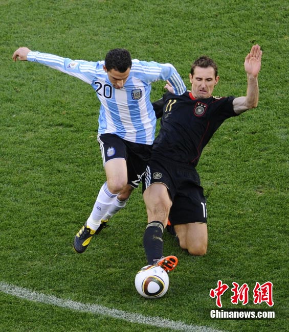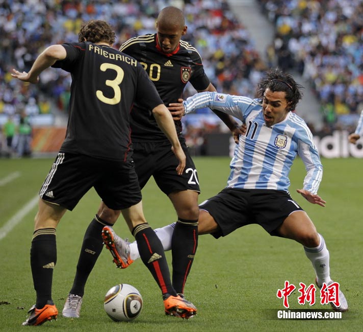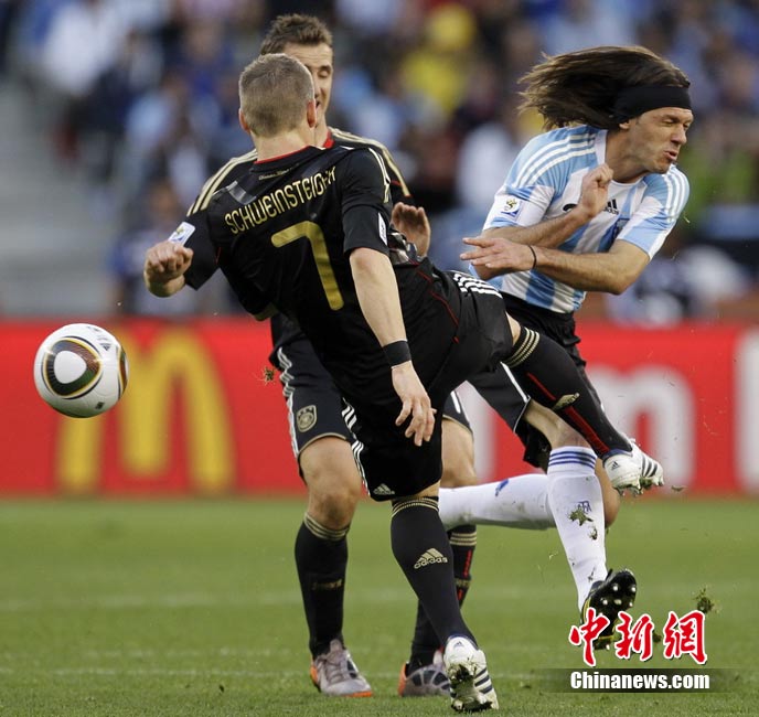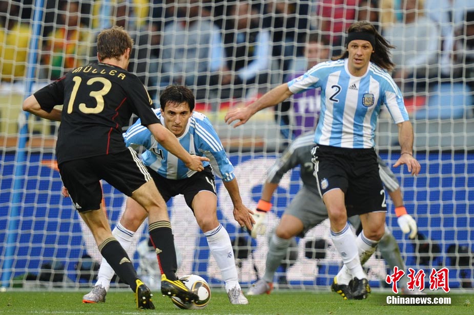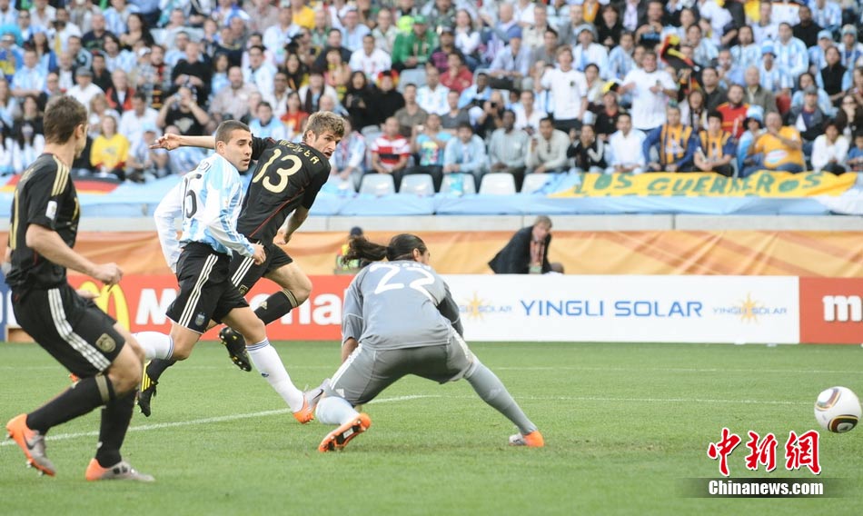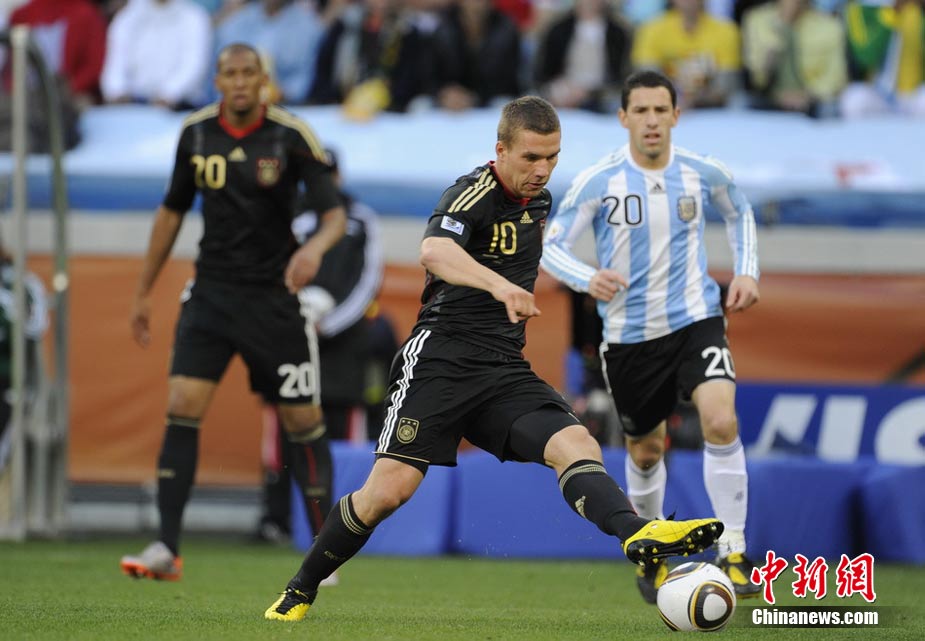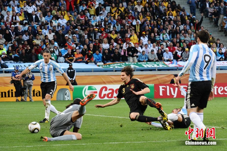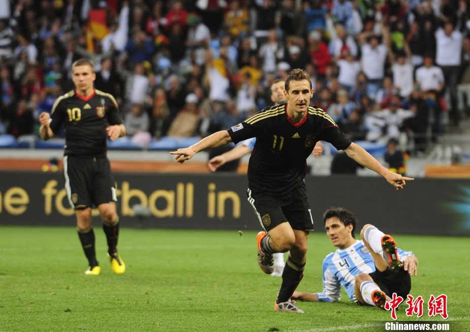 7月3日晚,南非世界杯1/4決賽第三場展開了角逐,阿根廷隊在開普敦綠點球場迎來了德國隊的挑戰(zhàn)。穆勒在上半場第3分鐘先拔頭籌,下半場克洛澤梅開二度,弗雷德里希也打入一球,德國隊4-0狂勝阿根廷,昂首晉級半決賽。