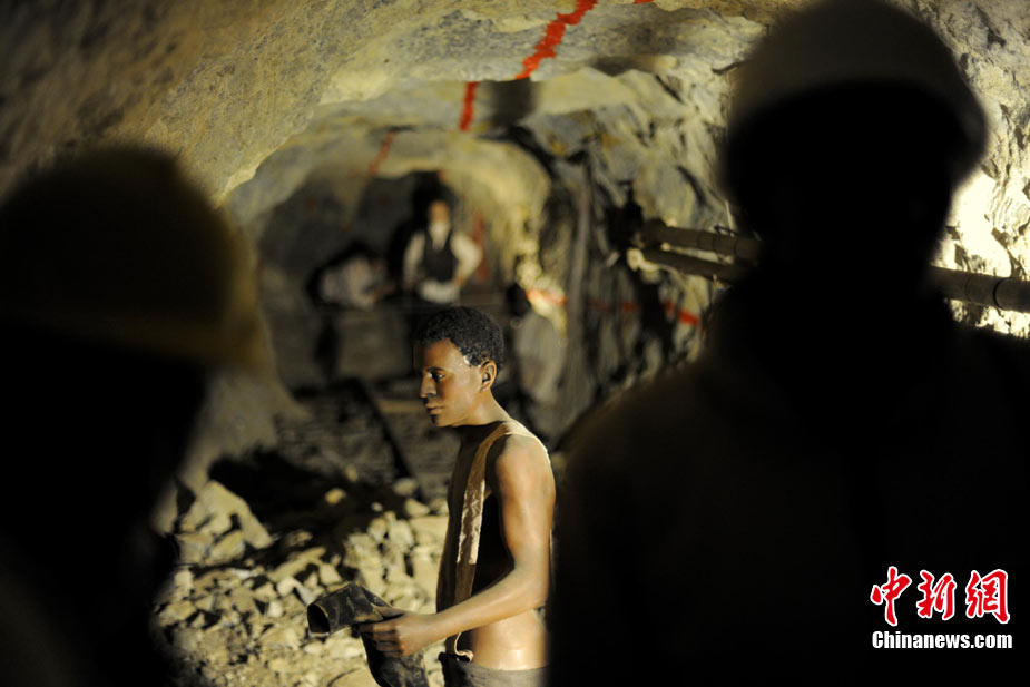 南非的金礦主要分布在奧蘭治河的支流瓦爾河流域,大體成一半圓形,延伸500公里,素有“金弧”之稱,而礦區(qū)主體便是以約翰內(nèi)斯堡為中心,向東西延伸。 2010世界杯主賽場(chǎng)——約翰內(nèi)斯堡足球城球場(chǎng)便建在一片金礦之中,被當(dāng)?shù)厝诵稳轂椤氨唤鸬V包圍的球場(chǎng)”。近日,金礦試驗(yàn)新型炸藥,爆炸聲傳到足球城球場(chǎng),還引起全世界媒體的虛驚一場(chǎng)。 在約翰內(nèi)斯堡“皇冠金礦”舊址上建起的主題公園“黃金城”中,游客在這里可以看到,18世紀(jì)末淘金熱潮時(shí)礦場(chǎng)附近造幣廠、餐廳、診所的舊模樣!盎使诮鸬V”因?yàn)榈V石含金量日趨下降,于1977年正式停產(chǎn)。中新社發(fā) 廖攀 攝